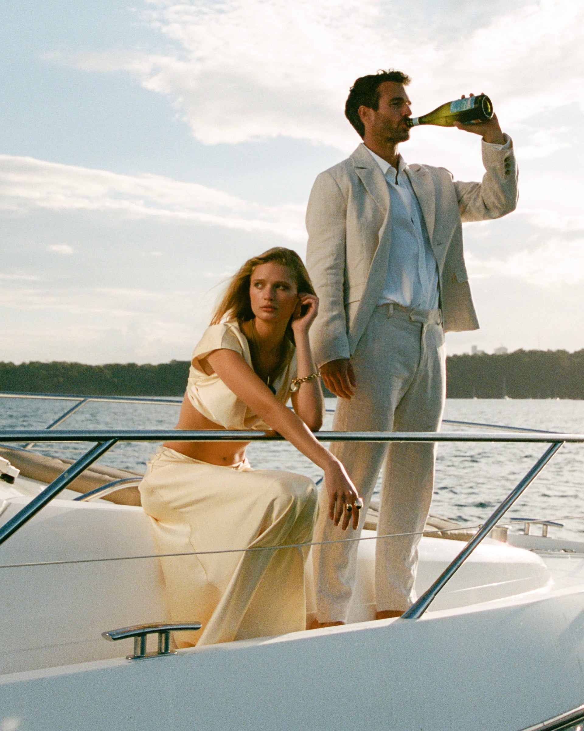 The campaign tells the story of a woman alone on a boat, floating through a sunlit Summer. Though he is near, his presence is distant, a silent companion to her own journey. She moves with confidence and independence, fully immersed in her own path. Together, yet apart. A reminder that true grace is found in owning your solitude and embracing your own journey.