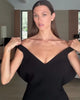 Striking in simplicity, Ellery is a black maxi designed to contour and flatter. Crafted from a sculpting crepe, she features an effortless off-shoulder neckline that flatters the décolletage, before descending into a floor-length dress with a high back split for ease of movement. Elegant yet timeless, Ellery is made for lasting moments.