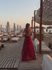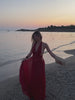 The Florence Dress is a striking blend of intricate design and effortless elegance. Each step creates an ethereal moment, with a lightweight georgette that softly drapes over the figure. Delicately detailed with intricate hand stitching over the bust, her plunging neckline seamlessly transitions into a flattering, ruched waist to accentuate. Her draped silhouette is beautifully balanced by a chic open back and triangular cutouts at the hips. Crafted for those who desire refined luxury, Florence is the ultimate expression of a fluid statement.