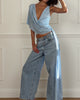 Effortlessly contemporary, Solene is an asymmetric top in a sky blue hue. Crafted from a soft jersey fabrication, it flatters the body while offering fluid movement. She features a draped crossover front with a deep V neckline and a one-shoulder silhouette that falls elegantly across the silhouette. The long sash tie falls loosely at the side for a graceful drape, this piece brings a refined yet relaxed feel to any look and styles perfectly with denim or tailored separates.